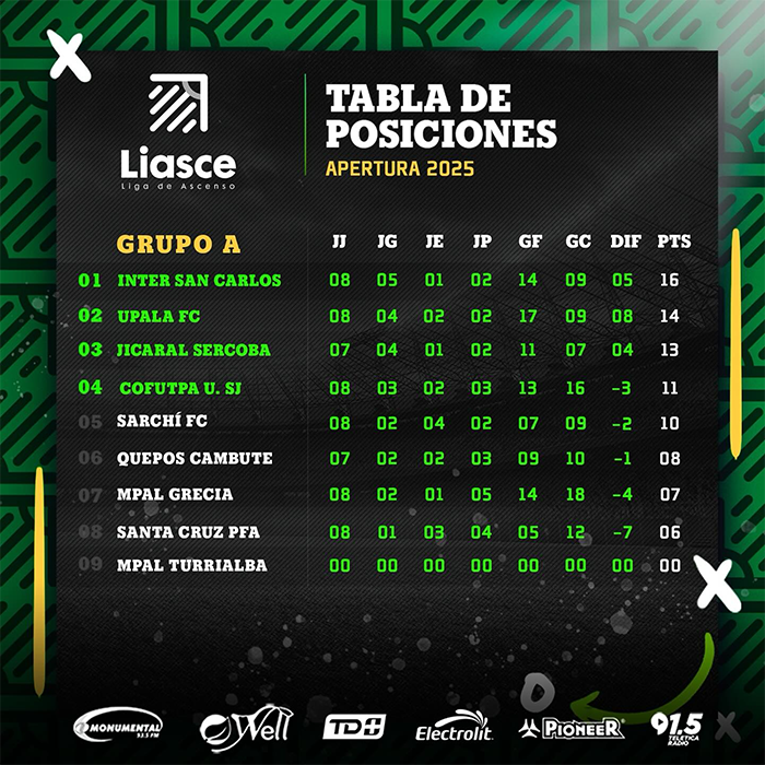 Santa Cruz PFA empató 2-2 ante Jicaral Sercoba; el cuadro jicaraleño abrió la cuenta con Alejandro López (03'), empató Nicolas Granados (06'), un autogol de Jackson Matarrita (36') le permitió a los locales darle vuelta a la pizarra, pero apareció de nuevo López (27') para igualar.